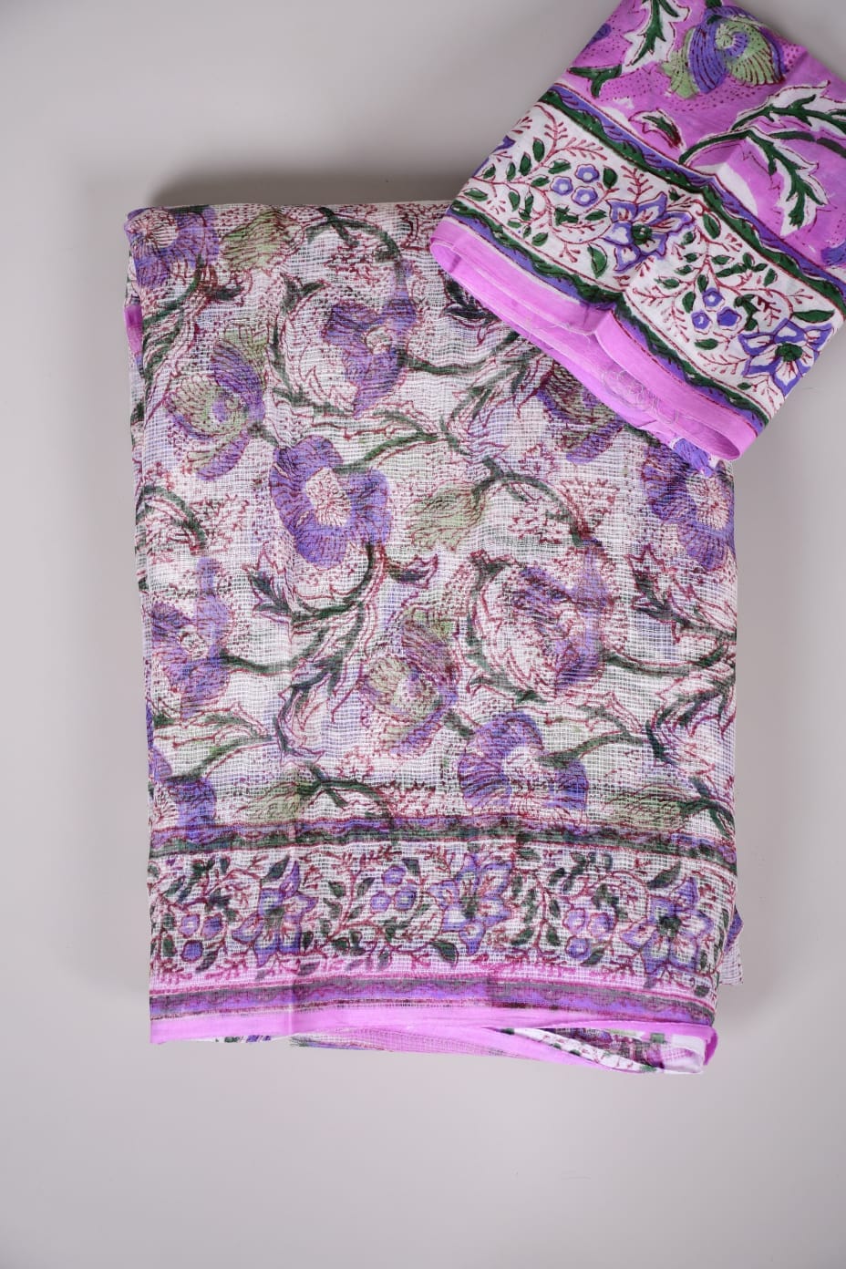 HAND BLOCK BAGRU PRINTED KOTA DORIYA SAREE WITH MULMUL BLOUSE (KDS25)