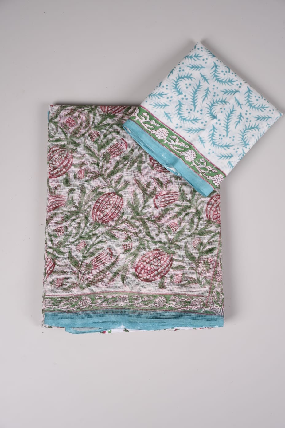 HAND BLOCK BAGRU PRINTED KOTA DORIYA SAREE WITH MULMUL BLOUSE (KDS28)