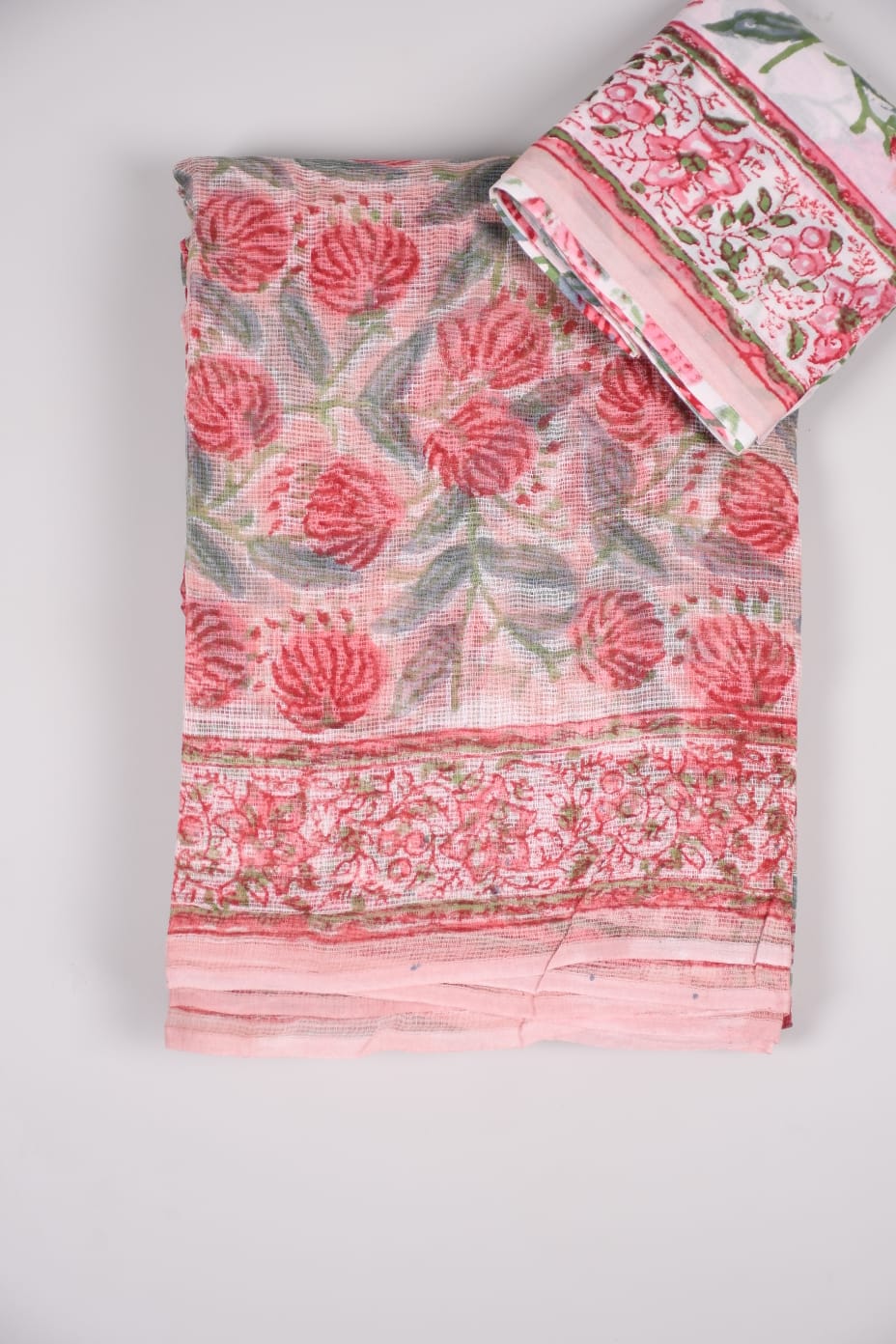 HAND BLOCK BAGRU PRINTED KOTA DORIYA SAREE WITH MULMUL BLOUSE (KDS37)