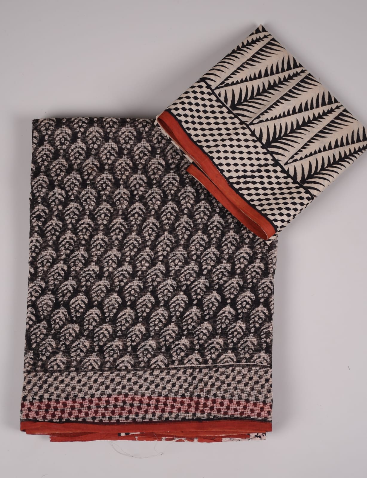 HAND BLOCK BAGRU PRINTED KOTA DORIYA SAREE WITH MULMUL BLOUSE (KDS41)