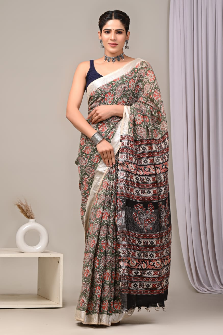 🍁 New Kalamkari Print Linen Saree 🍁👆