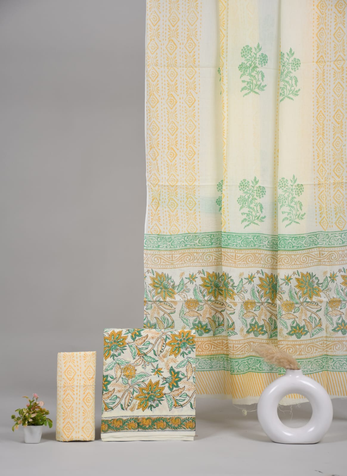 HAND BLOCK PRINTED COTTON 3-PIS SUIT WITH MULMUL DUPPATA (CMS11)