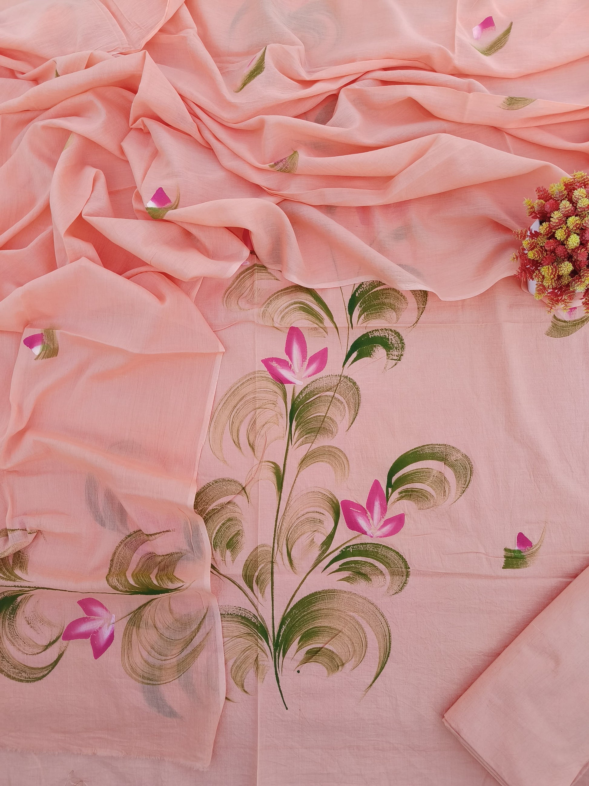 HAND BLOCK PRINTED COTTON 3-PIS SUIT WITH MULMUL DUPPATA (CMS6)