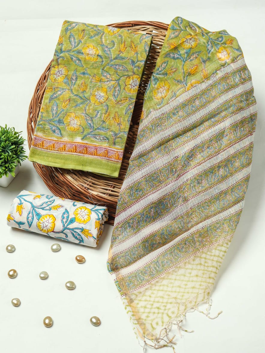 HAND BLOCK PRINTED KOTA DORIYA SUIT WITH KOTA DORIYA DUPPATA (FKS13)