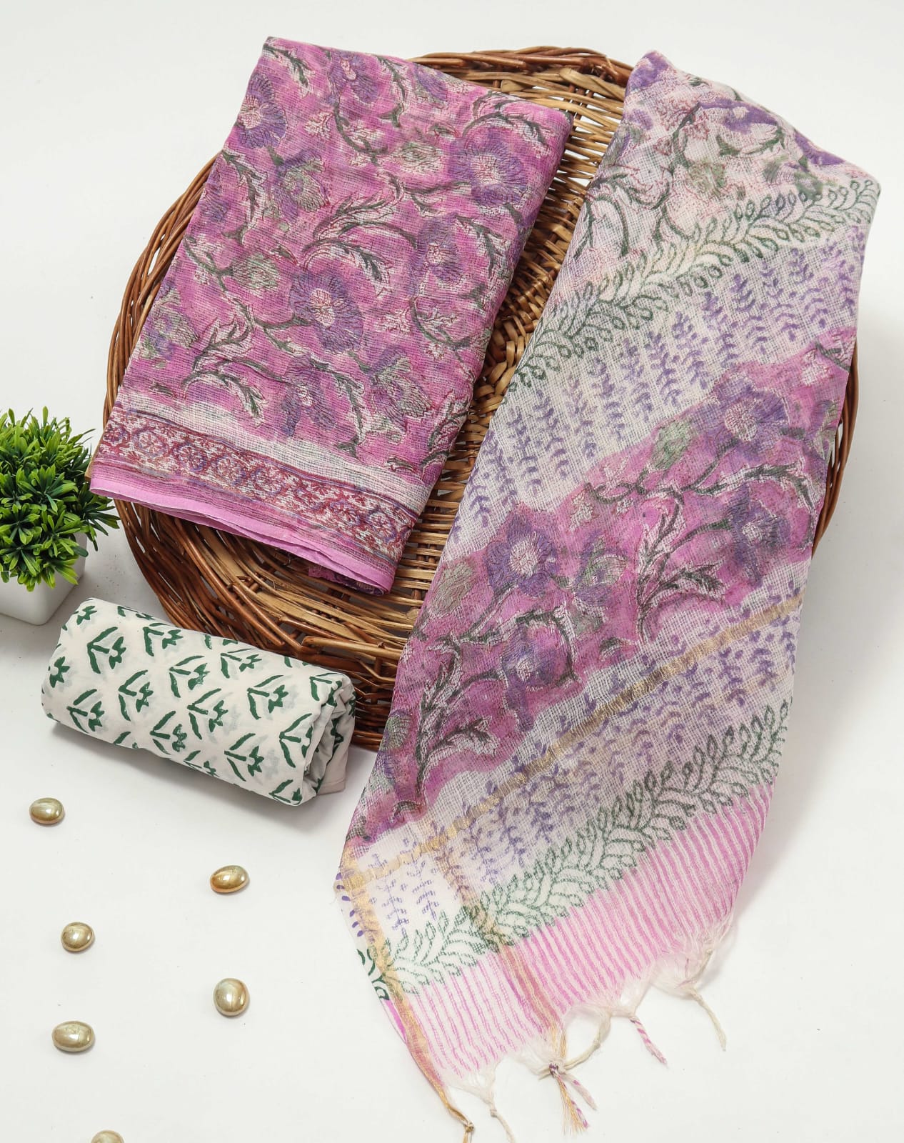 Hand Block Printed Kota Doriya Suit with Kota Doriya Duppata