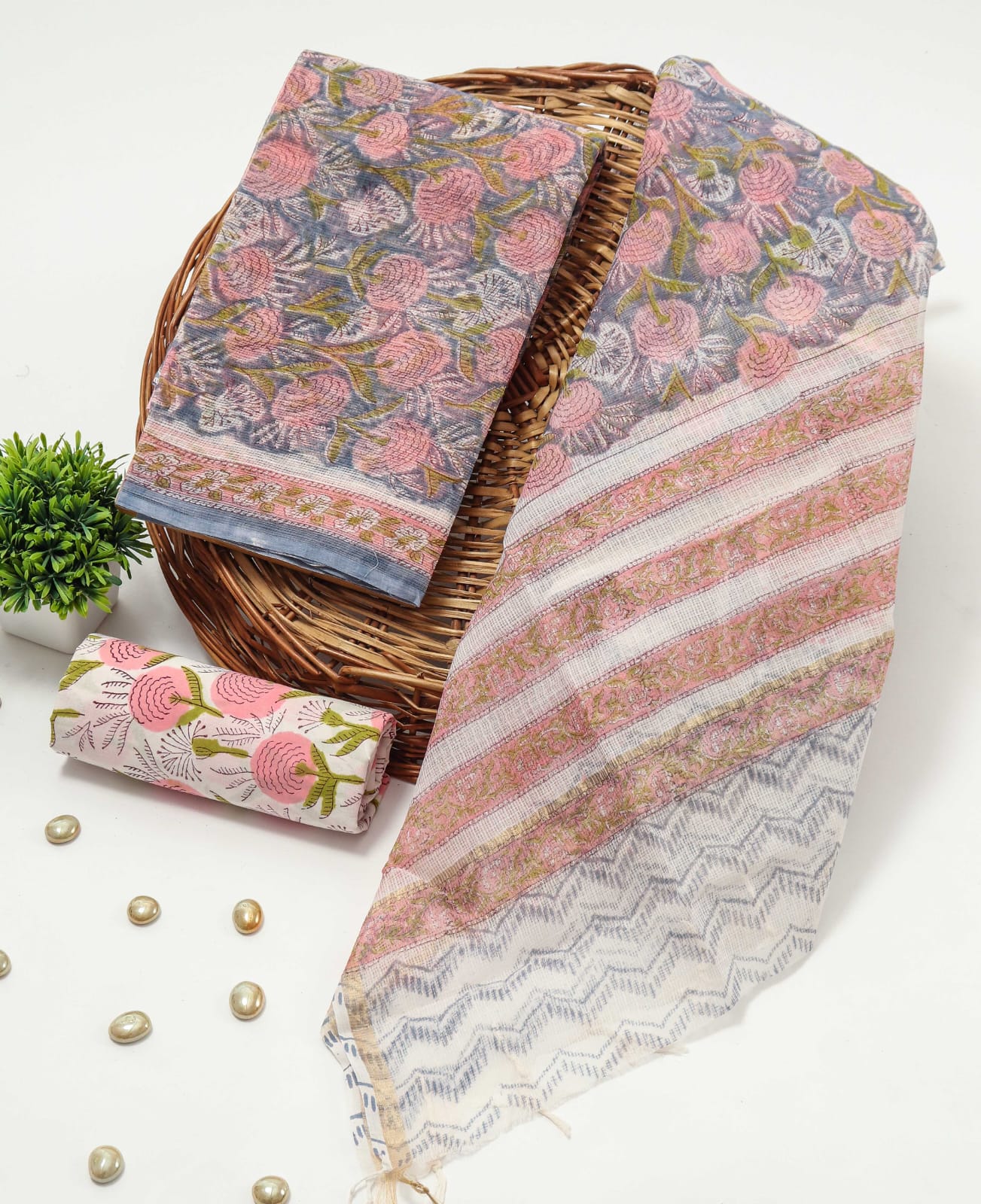 HAND BLOCK PRINTED KOTA DORIYA SUIT WITH KOTA DORIYA DUPPATA (FKS63)