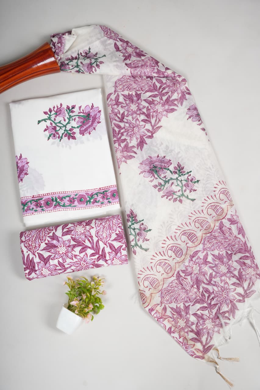 Special Hand Block Printed Chanderi Silk Duptta Cotton SuitsÂ