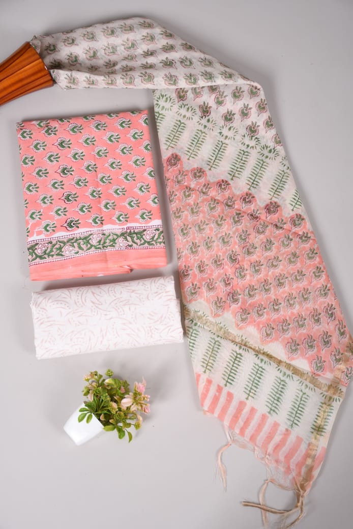Special Hand Block Printed Chanderi Silk Duptta Cotton SuitsÂ