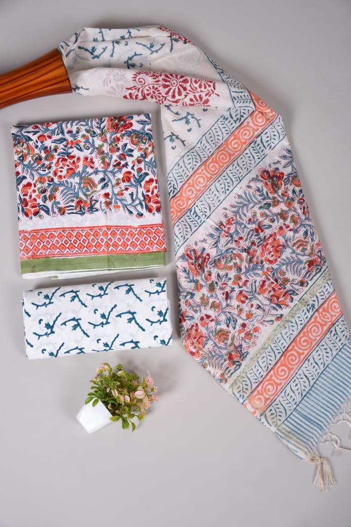 Special Hand Block Printed Chanderi Silk Duptta Cotton SuitsÂ