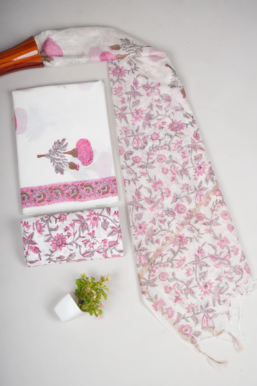 Special Hand Block Printed Chanderi Silk Duptta Cotton SuitsÂ