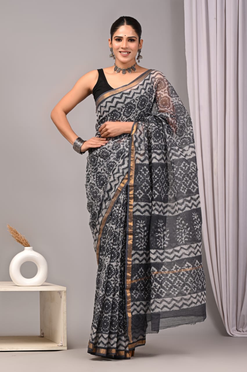 Jaipuri Block Printed Cotton Kota Doriya Saree (CIS40)