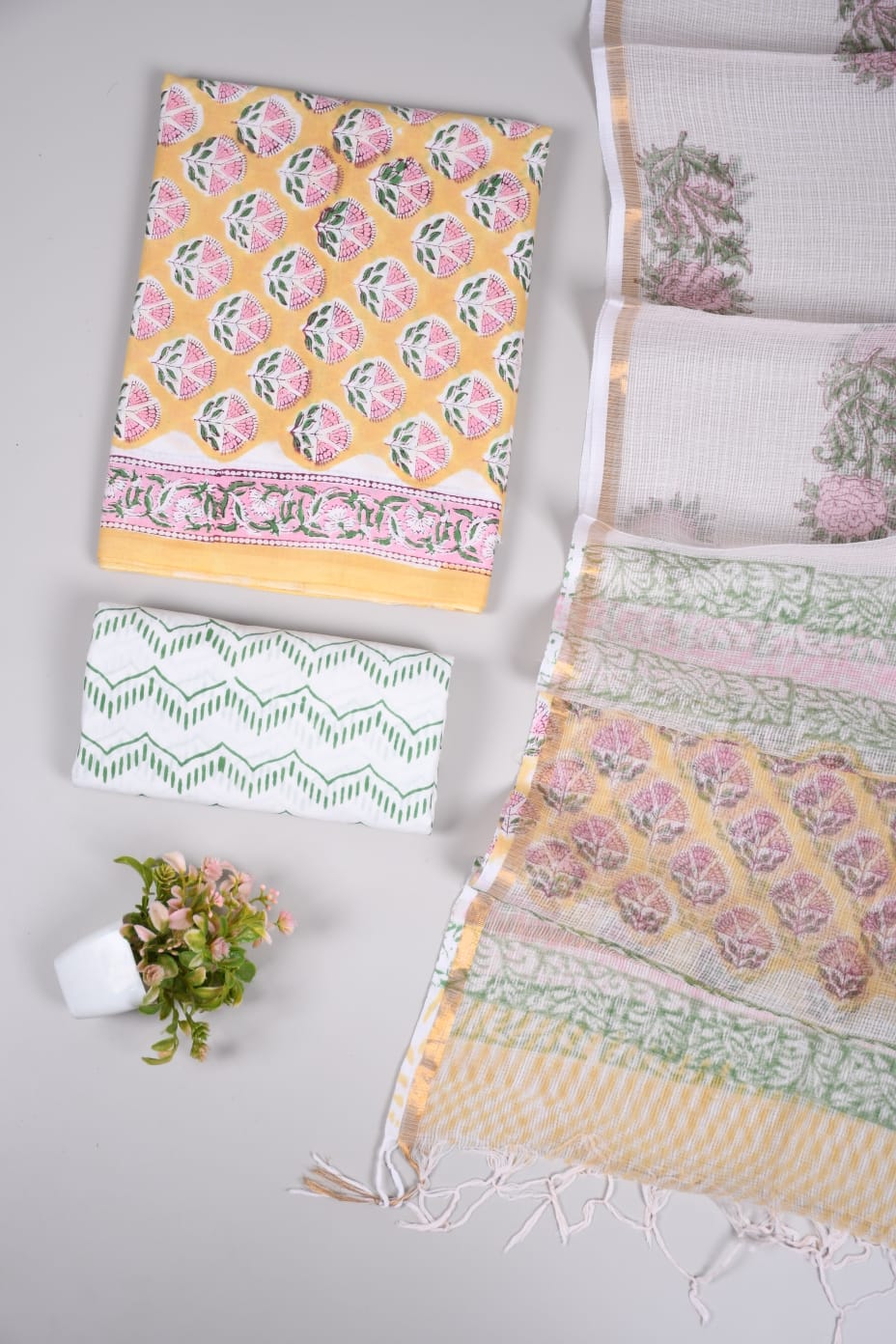 JAIPURI BLOCK PRINTED COTTON SUIT WITH KOTA DUPPATA (CKS12)