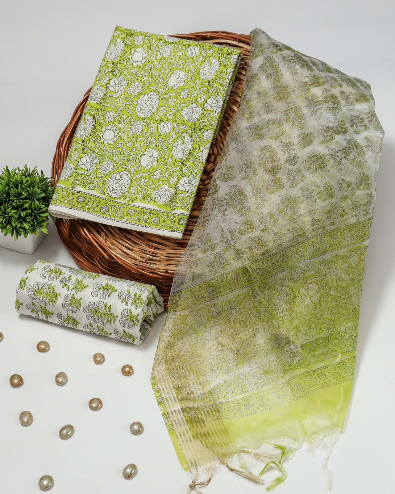 PRIMIUM JAIPURI COTTON SUIT WITH ORGANZA SILK DUPPATA (COS10)
