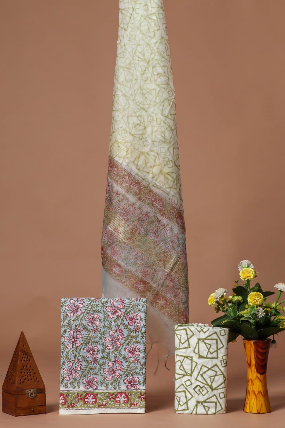 PRIMIUM JAIPURI COTTON SUIT WITH ORGANZA SILK DUPPATA (COS32)
