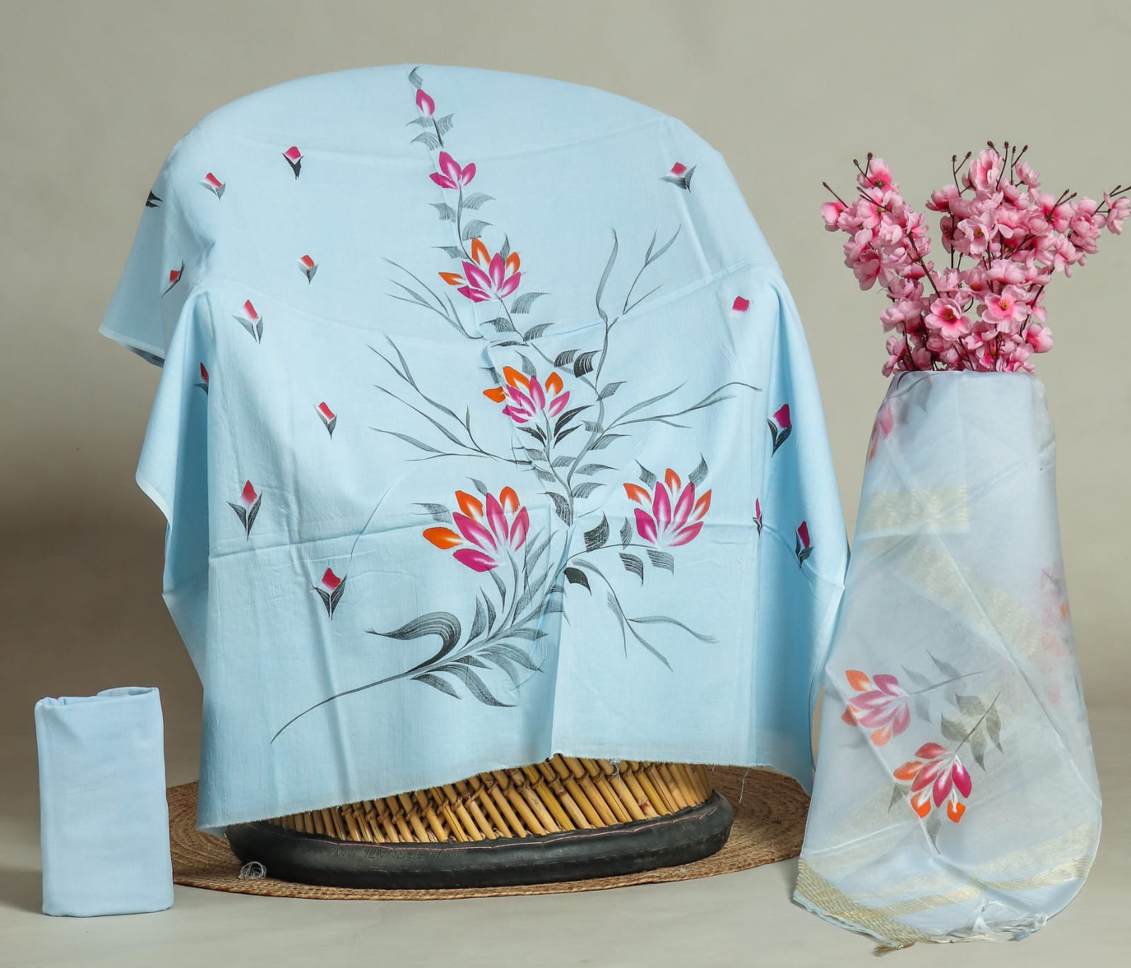 PRIMIUM JAIPURI COTTON SUIT WITH ORGANZA SILK DUPPATA (COS38)