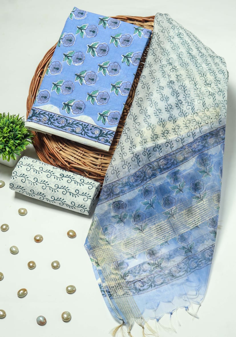 PRIMIUM JAIPURI COTTON SUIT WITH ORGANZA SILK DUPPATA (COS45)
