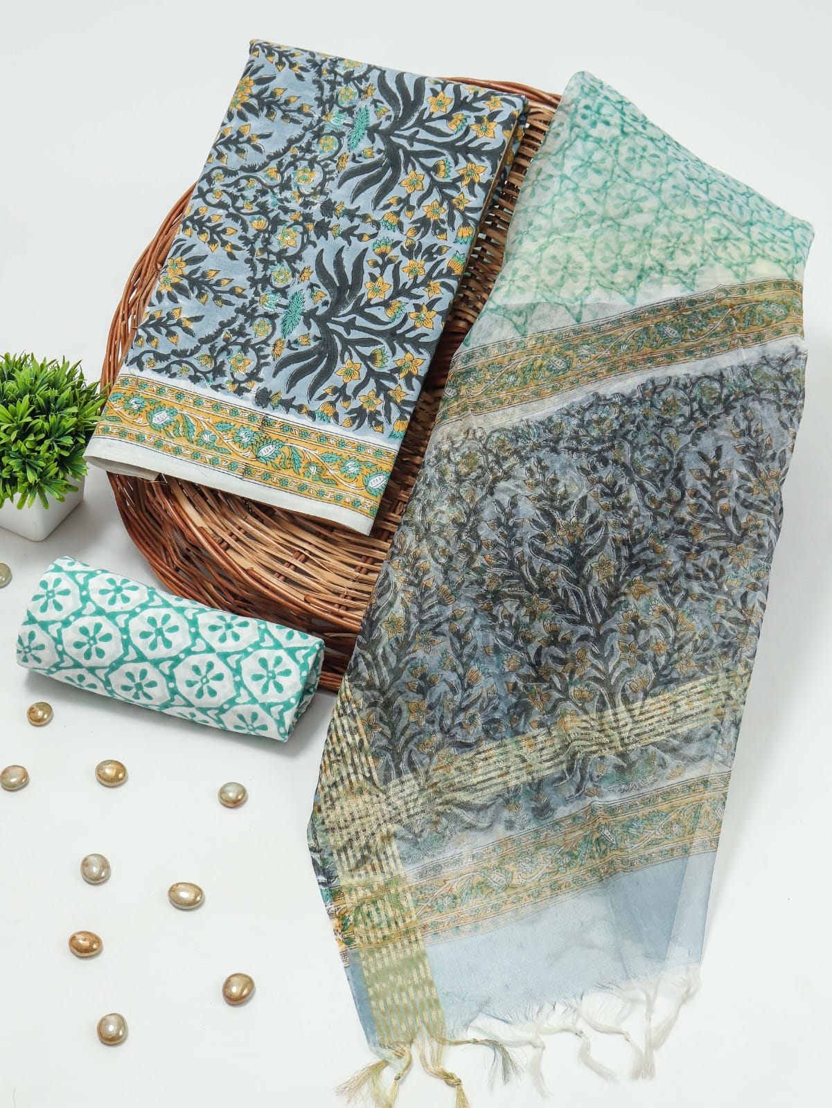 PRIMIUM JAIPURI COTTON SUIT WITH ORGANZA SILK DUPPATA (COS48)