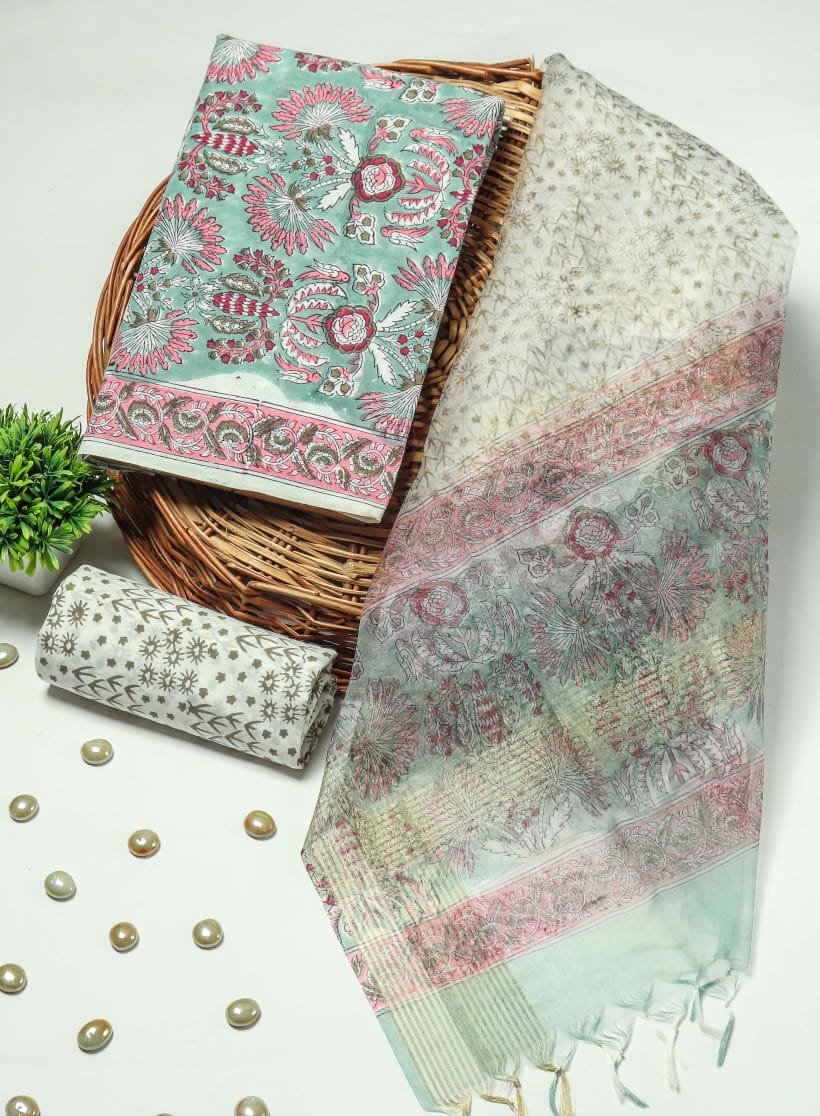 PRIMIUM JAIPURI COTTON SUIT WITH ORGANZA SILK DUPPATA (COS52)