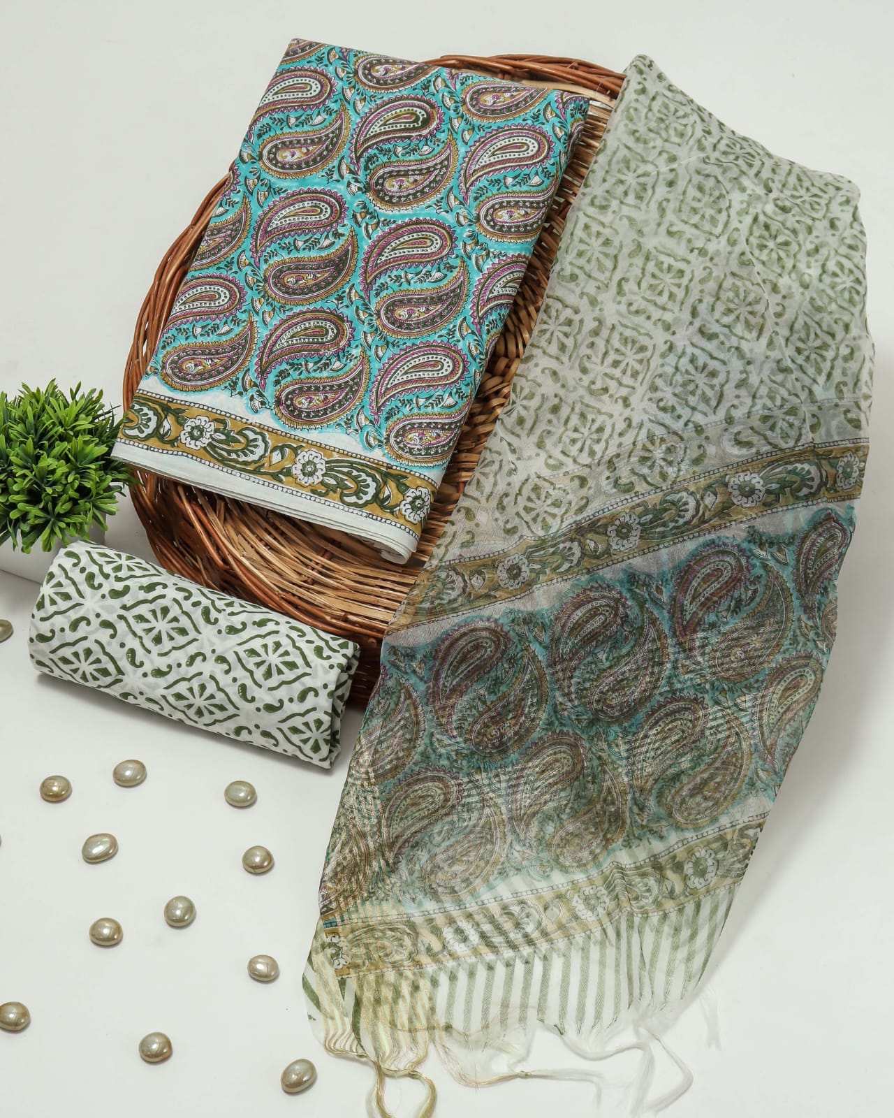 PRIMIUM JAIPURI COTTON SUIT WITH ORGANZA SILK DUPPATA (COS8)