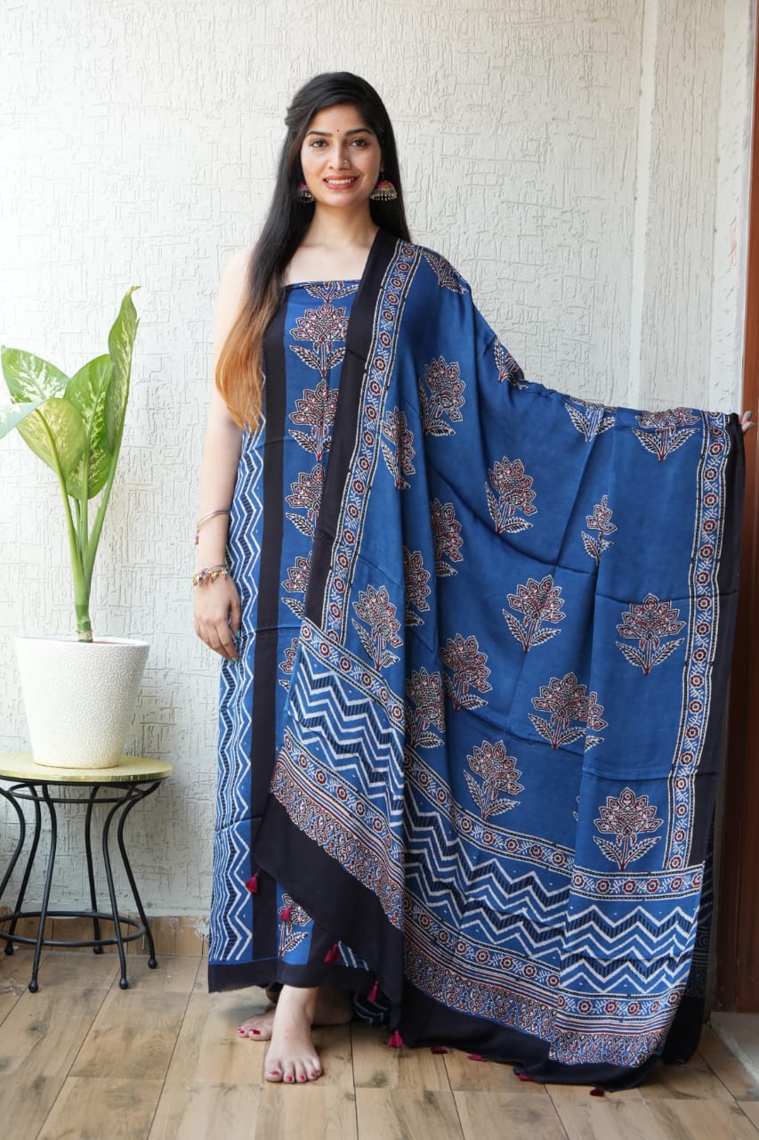 Vanaspati Ajrakh Hand Block Printed Suits Modal Silk Fabric (CIT11)