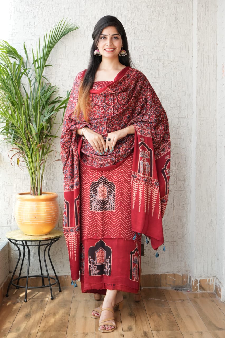 Vanaspati Ajrakh Hand Block Printed Suits In Modal Silk Fabric Suits